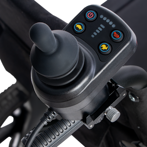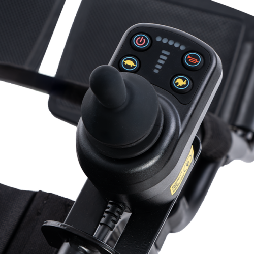 - Joystick multifuncional: com porta de carregamento integrada e controle preciso de direção e velocidade.