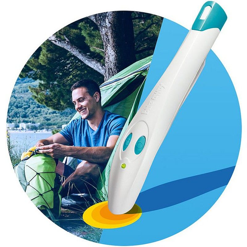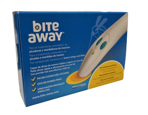 Bite away, para o tratamento de picadas de insetos e picadas com um único clique. Pode aliviar rapidamente e por muito tempo a coceira causada por picadas e picadas de insetos. E tudo isso sem a necessidade de mexer com géis e cremes graças ao seu efeito livre de produtos químicos. Concebido, desenhado e fabricado na Alemanha.