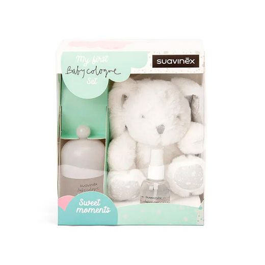 A fragrância Suavinex bebê Colônia, com sua fórmula de baixo teor alcoólico, possui aroma fresco e delicado, com notas cítricas e essências de flores brancas e almíscares. Inspirado no Mediterrâneo, seu perfume também contém notas de bergamota e Huguet, com fundo de Almíscar Branco.