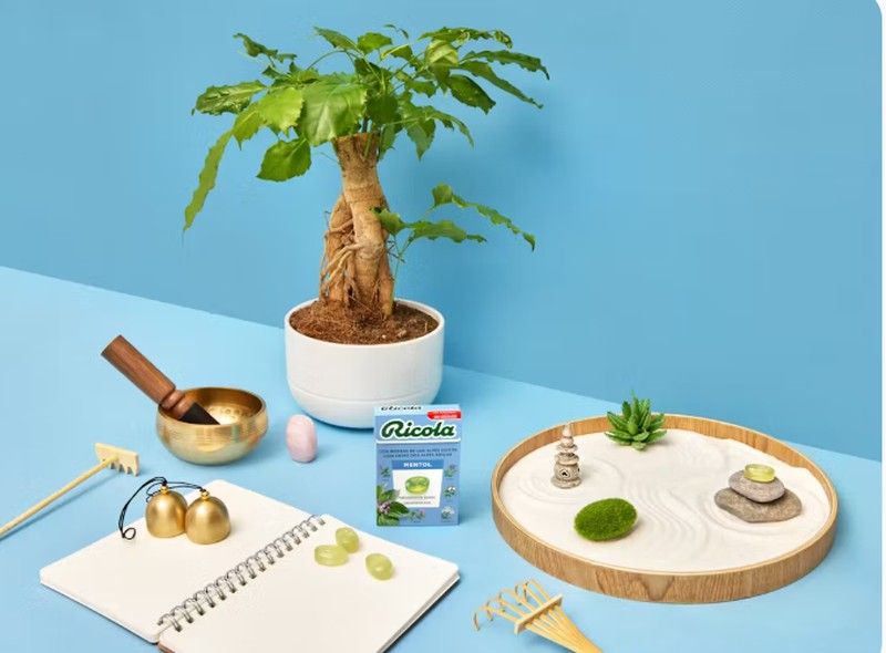 Prepare-se! Este doce libera sua poderosa ação refrescante com uma mistura de mentol, óleo de eucalipto e 13 extratos de ervas da Ricola. Graças à eficácia do mentol, você sentirá imediatamente como suas vias aéreas se abrem e sua garganta se acalma.