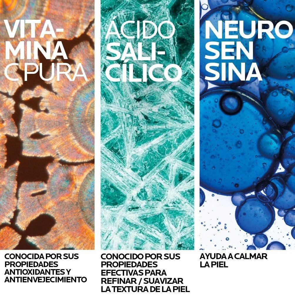 12% de vitamina C pura. Um ingrediente antienvelhecimento dermatologicamente comprovado que ilumina a pele e suaviza rugas e linhas de expressão ao longo do tempo. A vitamina C também pode inibir a produção de melanina produzida pelos melanócitos na epiderme para reduzir o aparecimento de manchas escuras.