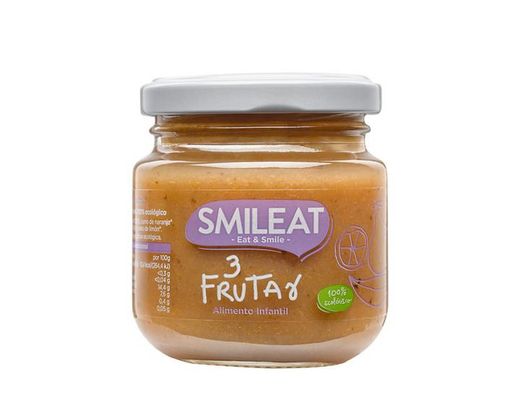 O pote Smileat 3 Fruits é uma combinação perfeita de purês de frutas para o bebê dar ao seu filho. A laranja, a banana e a pêra são incríveis e todos vão gostar, também vão aprender a comer a fruta de forma divertida e benéfica. Este frasco é 100% biológico, natural, sem adição de açúcar, sem conservantes nem corantes, como os nossos produtos para bebé, que se destacam pela sua textura caseira e por incorporarem as melhores matérias-primas provenientes da agricultura biológica.