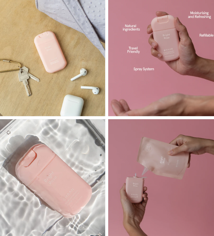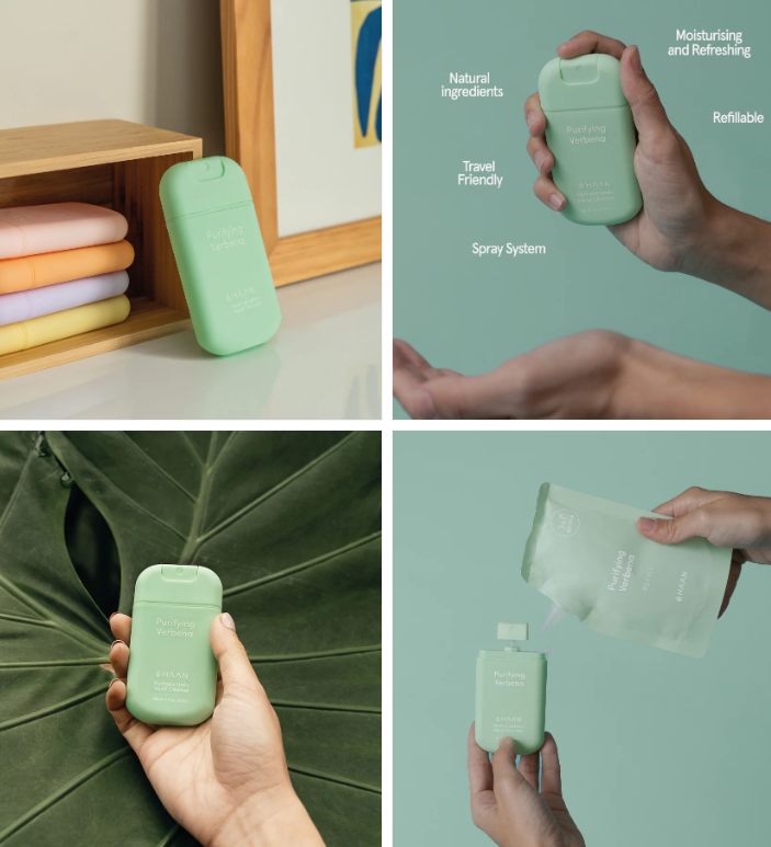 Desinfetante para as mãos em spray de 30 ml. Livre de triclosan e parabenos, é formulado naturalmente com álcool etanol 65% e aloe vera, que previne a sensação de ressecamento e deixa a pele hidratada. Rosa Brilhante, Cristais Curativos, Verbena Purificante, Lavanda Calmante ou Camomila Tranquila. Escolha a sua fragrância favorita!